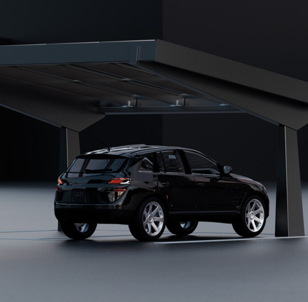 Esta marquesina fotovoltaica revolucionaria puede soportar 3 filas de módulos de hasta 1762mm en vertical y es perfectamente personalizable según el número de plazas de aparcamiento: 2, 3, 4 o 5.