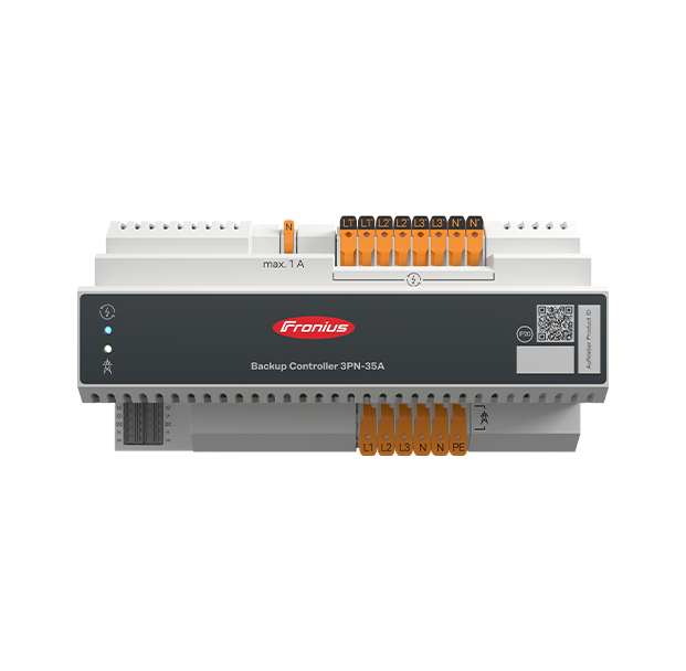 Conmutador automático compacto que activa el modo Full Backup ante un corte de red. Fácil de instalar y perfecto para sistemas fotovoltaicos residenciales con batería.
